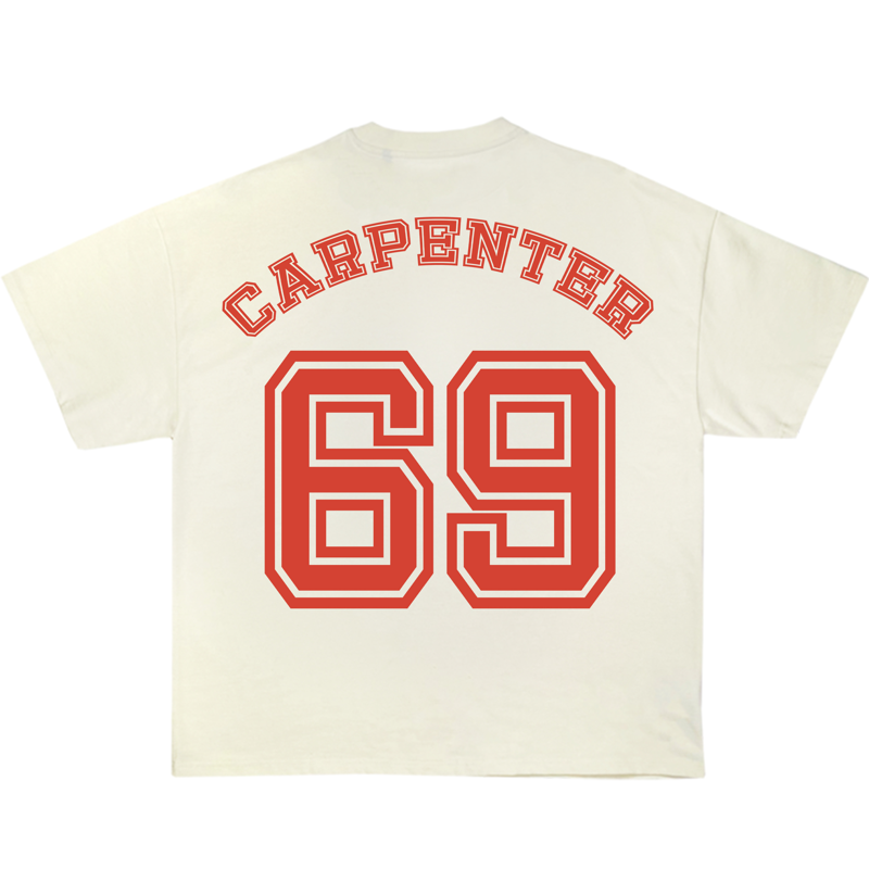 A Camiseta Sabrina Carpenter (Team Carpenter) traz um visual confiante, divertido e cheio de personalidade, perfeito para fãs que acompanham a artista. Estampa: frente e costas. Modelagem: tradicional. Cores: Off-White. Estampa: em DTG. Confira o guia de medidas. Confeccionada em 100% algodão fio 30.1 penteado, gramatura 140–160 g, gola 1x1 e reforço ombro a ombro, garantindo conforto, durabilidade e um caimento premium para o dia a dia, shows ou rolês. Adesivos incluÃdos em todos os pedidos.